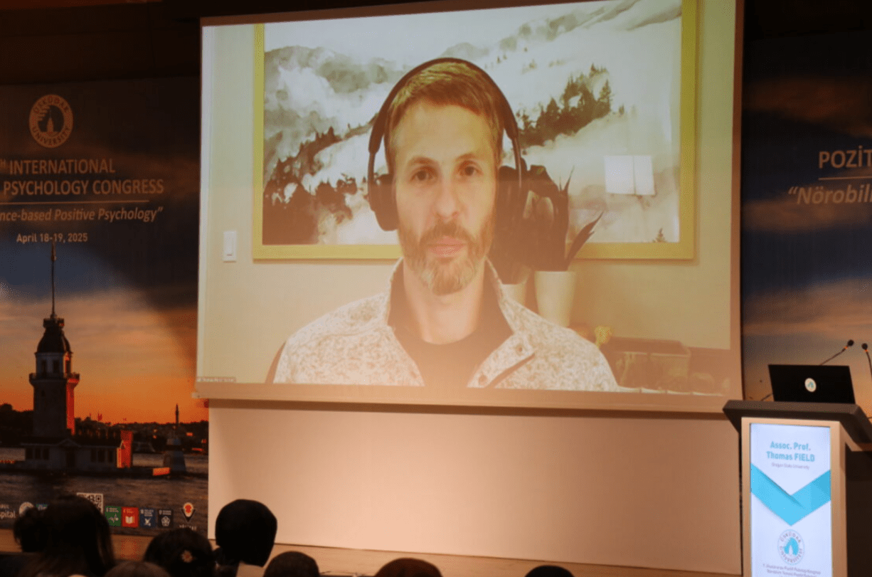 Üsküdar Üniversitesi tarafından bu yıl “Nörobilim Temelli Pozitif Psikoloji” temasıyla 7’ncisi düzenlenen Uluslararası Pozitif Psikoloji Kongresi’nin “Onur Konuğu” Oregon Eyalet Üniversitesi’nden Doç. Dr. Thomas Field, “Sinirbilime Dayalı Bilişsel Davranış Terapisi Hakkında Kısa Başlangıç” konusunu ele aldı.