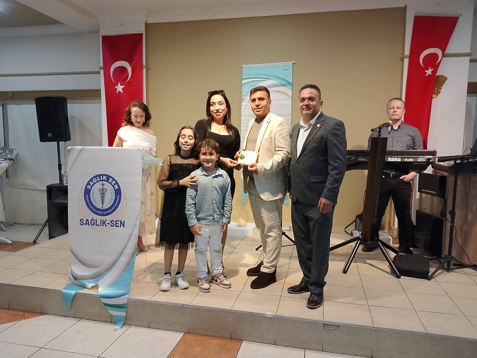Etkinlikte meslekte 25 ve 30. yılını dolduran hemşire ve ebelere başarı plaketi verildi. Ardından Anneler Günü, Hemşireler ve Ebeler Haftası nedeniyle Sağlık Sen Yönetim Kurulu üyeleri tarafından pasta kesildi.15 Mayıs sendika sayımları yetki sürecinin hemen akabinde düzenlenen gece de moral ve motivasyonun yüksek olduğu gözlemlendi.Katılım sağlayan üyeler ve yakınlarına çekiliş ile hediyeler dağıtıldı.Etkinlikte konuşan Sağlık Sen 2 No’lu Şube Başkanı Ekrem Özdemir, önemli mesajlar verdi, “Ebe ve hemşinelerinmizin mesleğini yerine getiren bir meslek profesyoneli olmanın yanı sıra birer eş biren anne olurak ciddi sonumluluklarınız var. Ben de bir hemşire eşi olarak sizleri şükranla minnetle tebrik ediyorum. Sağlık Sen olarak Yoğun bakımda hayat kurtaran, acil serviste, serviste ameilaythade çalışan ebe ve hemşirelerin sesi olmaya çalışacağız. Hemşirelerimiz bugün bir çok sorunla karşı karışyaka, yüksek lisans doktora almış bir çok hemşiremezi bugün hala uzman hemşire unvanı almadan çalışmaktadırlar. Performans sisteimdeki adaletsizlikleri ortadan kaldırması için hemşirenin yaptığı her işin her bakımın karşılığını maddi ve manevi alabilmelidir. Sahada bu kazanımlar için sahada tüm benliiğimizle alışmaya devam ediyoruz. Önümüzdeki toplu sözleşemede çok önemli taleplerimiz var sizlerin vermiş olduğunuz destek ile nöbet ücretlerinin yüzde 100 artırılması ve züm sıkıntıları çözmek üzere masada olacağız. Sorunlanrımızın kazanıma dönüştürmek için mücadele edeceğiz” Konuşmaların ardından müzik eşliğinde eğlenen sağlıkçılar stres attı. (BSHA – Bilim ve Sağlık Haber Ajansı)